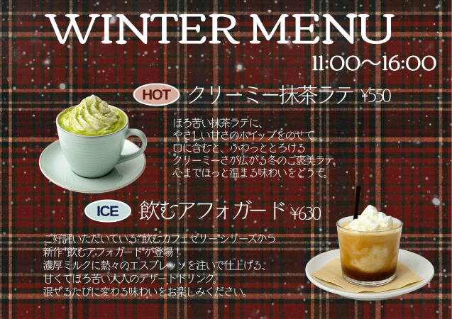 12/1(月)~2/28(土)まで 冬季限定メニューのご案内*.・。