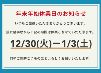 【年末年始休業のお知らせ】