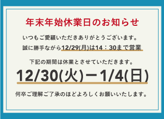 【年末年始休業のお知らせ】